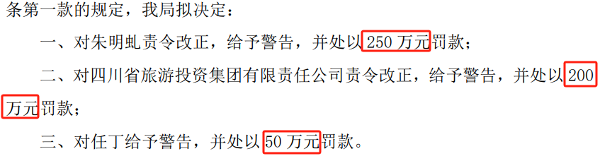 二、对四川省旅游投资集团有限责任公司责令改正,给予警告,并处以200万元罚款;