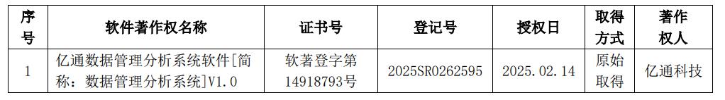 2月25日,亿通科技(300211)发布公告,近日公司取得国家版权局颁发的计算机软件著作权登记证书,具体为如下: