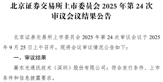 北交所上市委今日审议会议结果,蘅东光北交所IPO成功过会。