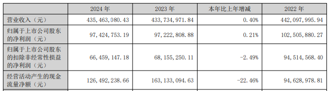 此前,东星医疗的扣非净利已连降3年。2021年至2024年,东星医疗归属于上市公司股东的净利润分别为1.10亿元、1.03亿元、0.97亿元、0.97亿元,归属于上市公司股东的扣除非经常性损益的净利润分别为1.03亿元、0.95亿元、0.68亿元、0.66亿元。