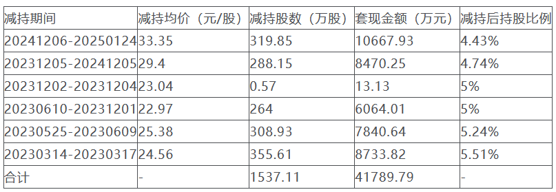 近日,公司收到申萍出具的《关于股份减持计划实施完成的告知函》。2025年9月1日至2025年11月14日,申萍通过集中竞价交易方式减持公司10,373,400股股份,减持价格区间为50.00元至59.83元,减持均价为54.202元/股,减持比例为0.926%。