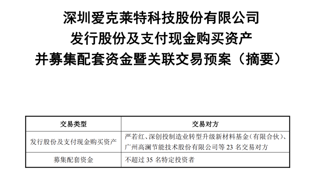 12月2日晚间,爱克股份公告,拟通过发行股份及支付现金的方式收购新能源电池热管理企业东莞市硅翔绝缘材料有限公司(下称“东莞硅翔”)的100%股权,并向不超过35名特定投资者发行股份募集配套资金。经交易各方协商,东莞硅翔100%股权交易价格暂定为22亿元。本次交易预计构成重大资产重组,公司股票于12月3日复牌。