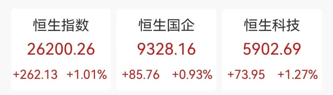 9月10日,香港三大股指全线上涨,恒生指数涨1.01%,报26200.26点;恒生科技指数涨1.27%,报5902.69点;恒生国企(510900)指数涨0.93%,报9328.16点。大市成交2882.09亿港元。南向资金净买入75.66亿港元。